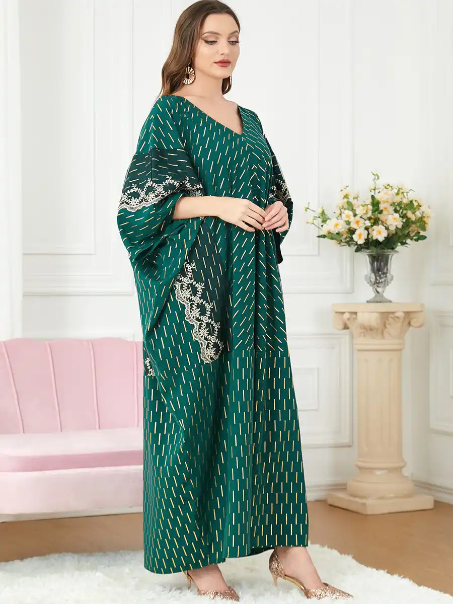3101 Muslim Robe Gold Stamping Embroidery Dubai Dress