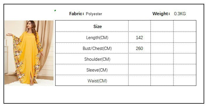 3422 Muslim Arabic Clothing Bat Floral Abaya Dress
