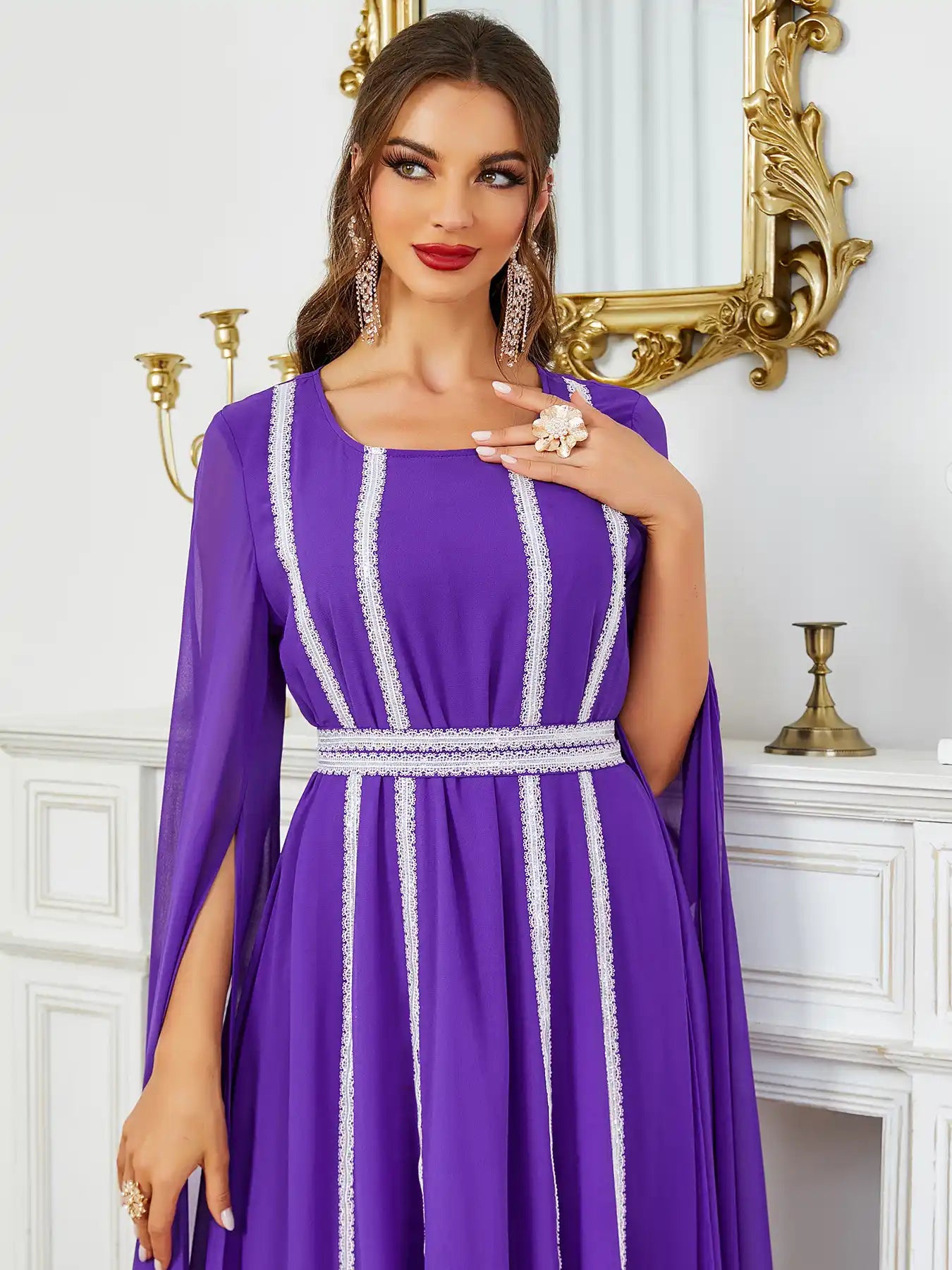 3601 Dubai Ultra-long Sleeve Evening Dress Muslim Women's Clothing