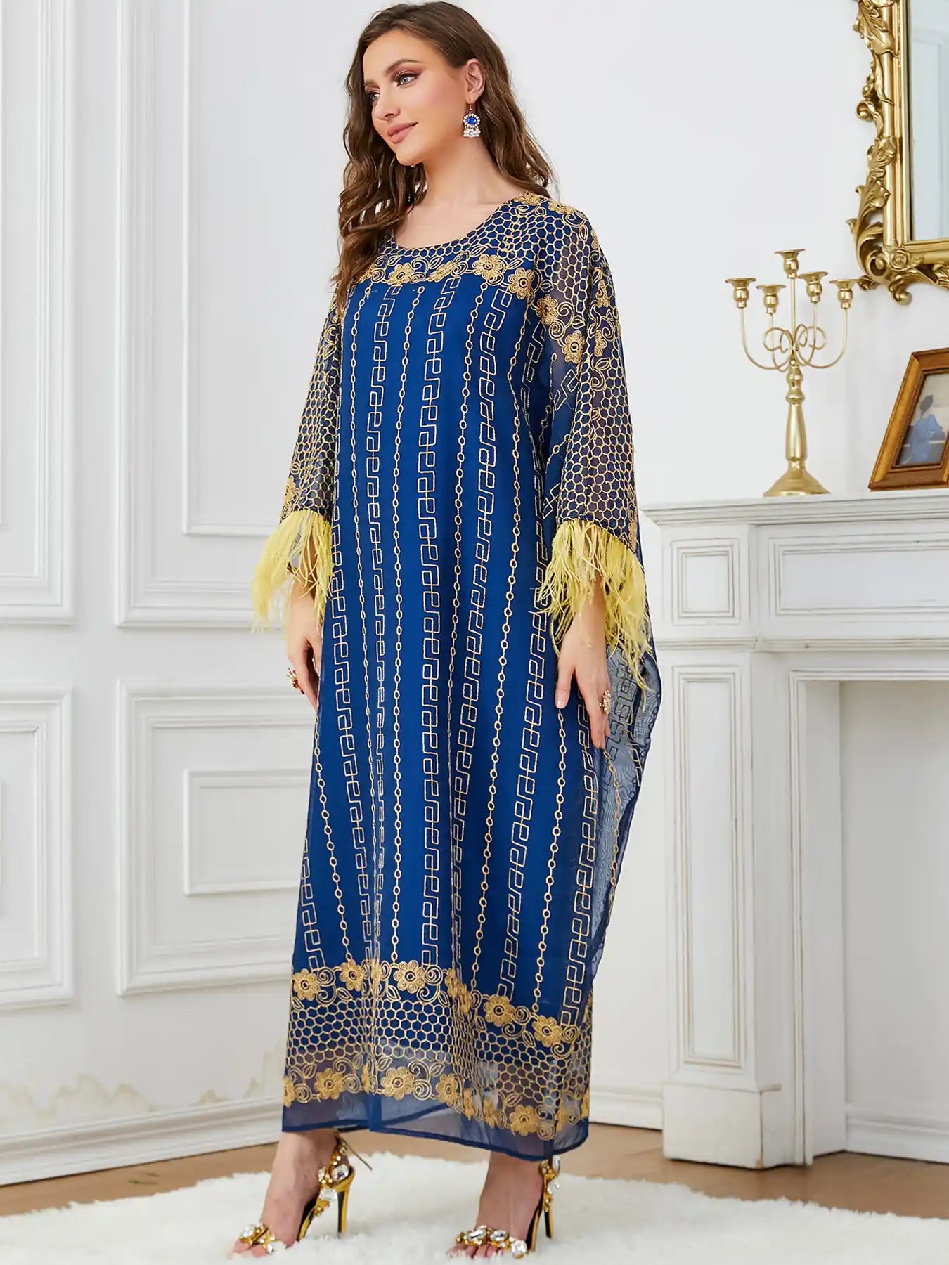 3643 Arabic Clothing Loose Bat Sleeve Embroidered Dress Abaya