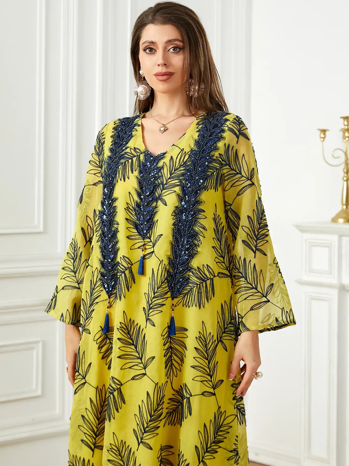 3740 Arabic Dubai Embroidered Dress Muslim Robe