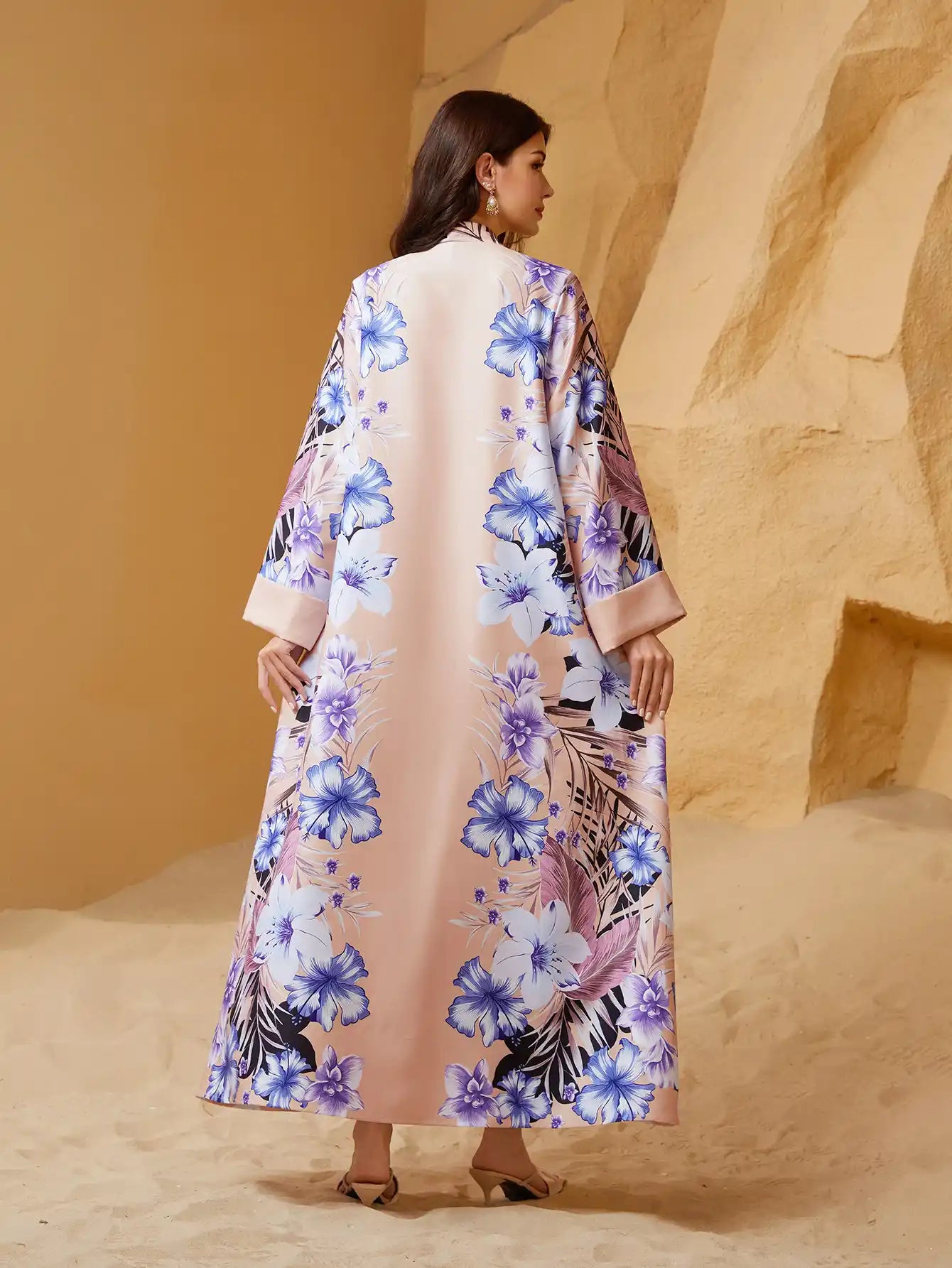 NC18 Muslim V-neck Robe Dubai Abaya Diamond Beads Dress